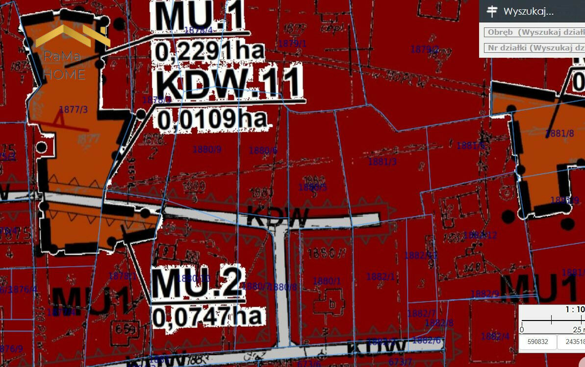 Połączone działki posiadają potencjał i dla klienta indywidualnego, jak również pod małą inwestycję deweloperską.
